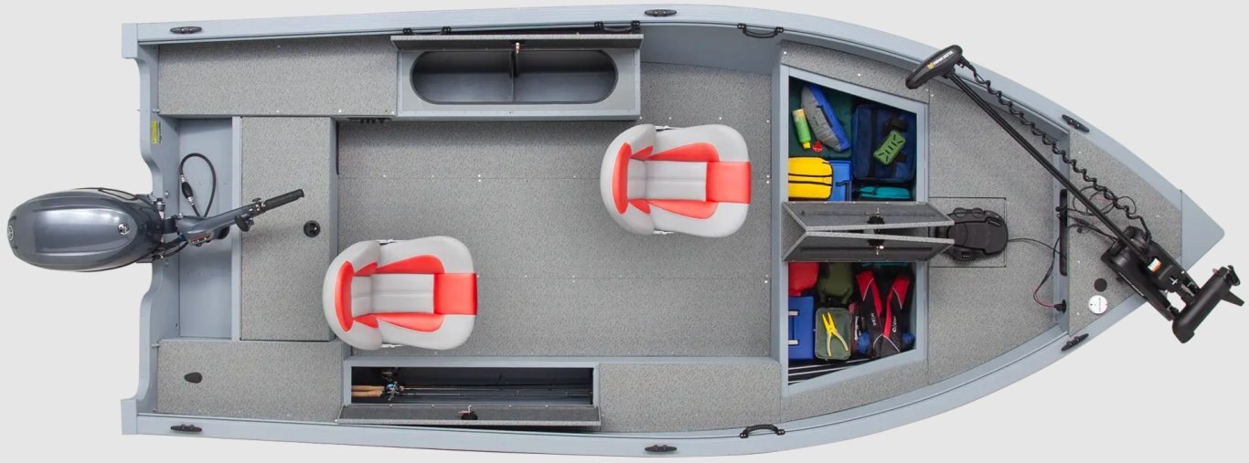 The Guide V167 T feature a responsive tiller handle for precise control, paired with a striking flame red hull. The unpainted bottom is designed to handle rocky shorelines with confidence, making this boat the perfect companion for anglers who demand durability and performance.