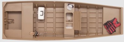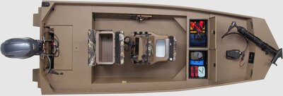 The Gator Tough Jon Series boat, motor and trailer packages are available in center or side console options in 20′ – 17′ lengths. Duck boats are also available in 18′, 16′ and 15′ options. VERSATILE – SPACIOUS PLATFORM Wide, open areas give angler room to cast and move around. Under-seat storage, side rod holders, bow storage and livewell wit...