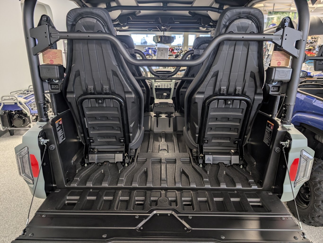 • Pour plus de confort et de protection, le toit pare-soleil est conçu pour protéger les occupants contre le soleil et les autres éléments, tout en offrant ce qu’il y a de meilleur en matière d'intégration d'accessoires avec des surfaces étanches et des points de montage intégrés pour une variété d'accessoires d'origine Yamaha.